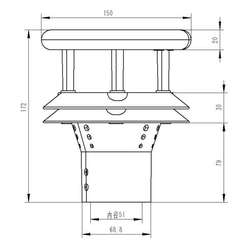 3.傳感器安裝上方應為開闊區域,雨滴應直接滴落至傳感器,應免二次滴落和連續水流沖擊
