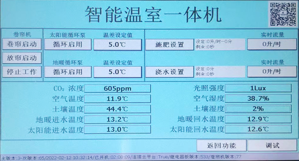 智能溫室一體機是一款綜合型智能控制設備,設備支持水肥一體機、485環境采集(二氧化碳濃度、空氣溫濕度、光照強度、土壤溫濕度等環境采集)、大棚地暖控制、物聯網智能設備控制,一機多用,性價比高!